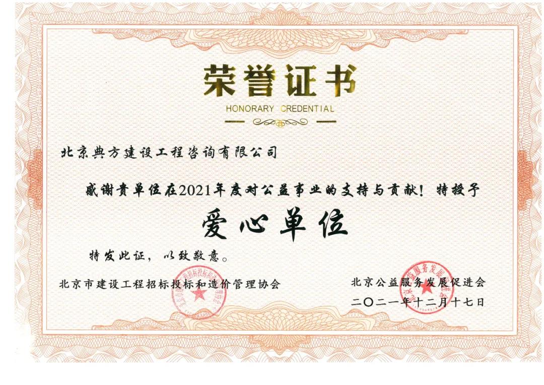 本次榮獲“愛(ài)心單位”證書,是由北京市建設(shè)工程招標(biāo)投標(biāo)和造價(jià)管理協(xié)會(huì)和北京公益服務(wù)發(fā)展促進(jìn)會(huì)共同頒發(fā)的,2021年“鄉(xiāng)村教育振興公益幫扶計(jì)劃”公益捐款活動(dòng)。活動(dòng)目的是為貫徹《中共中央國(guó)務(wù)院辦公廳關(guān)于推進(jìn)社會(huì)公益事業(yè)建設(shè)領(lǐng)域政府信息公開(kāi)的意見(jiàn)》精神,充分發(fā)揮行業(yè)引領(lǐng)與帶動(dòng)作用,加強(qiáng)愛(ài)心單位隊(duì)伍建設(shè)。